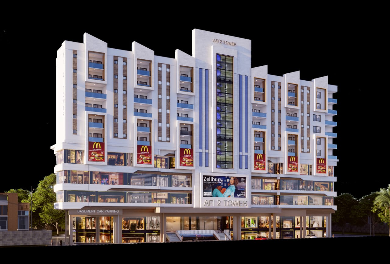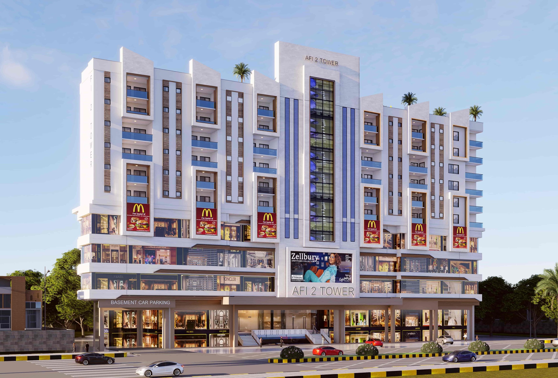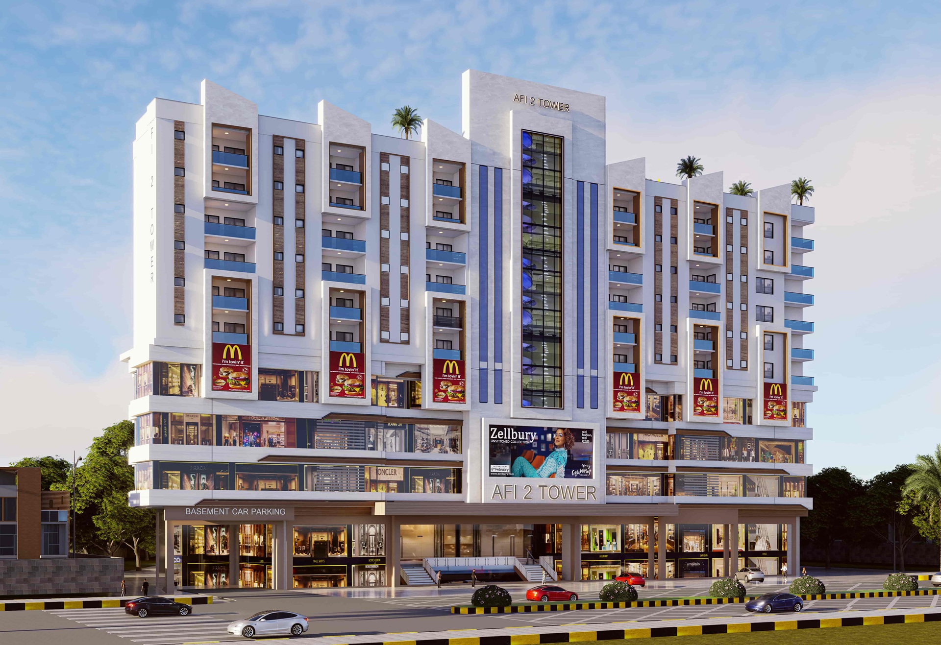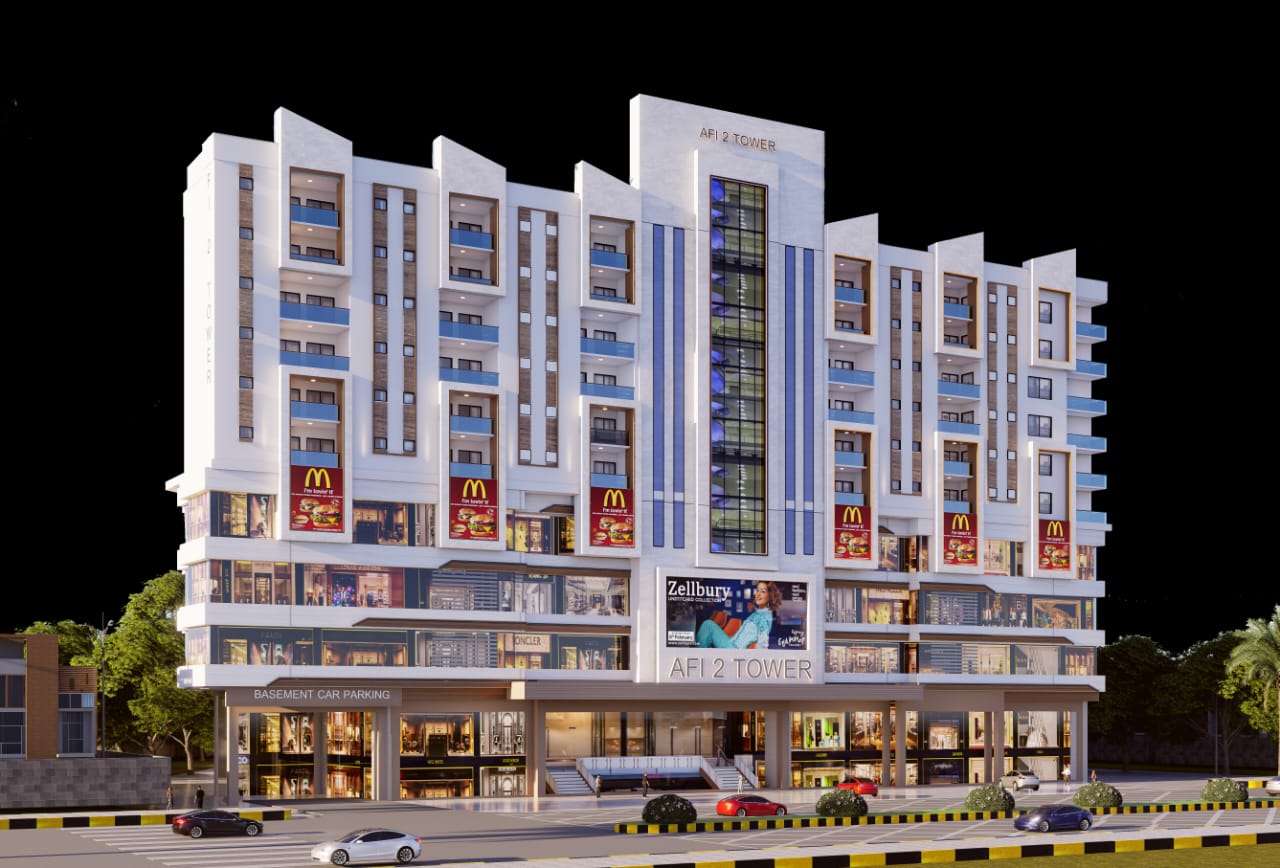 AFI Tower 2, is a project of Saif Associates Pvt Ltd., one of the finest shopping and residential complex located on Main University Road Peshawar, encompassing unmatched features. Commercial Shops are completely dedicated to top national and international brands, a food court and a playing area for kids, it is an exclusive shopping destination.