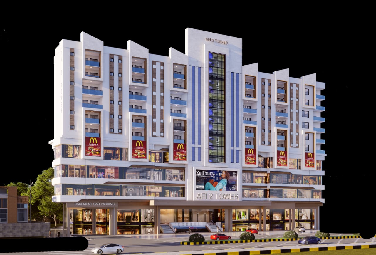 Book your Luxury 1, and 2 bedrooms apartment and commercial shops at a best Price in AFI Tower 2 Peshawar.