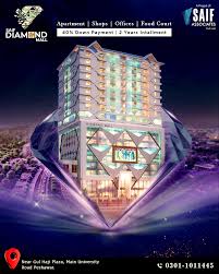 Diamond Mall Peshawar is the latest project of Saif Group Pvt Ltd. in Peshawar offering luxury apartments of 1 Bed, 2 Bed, 3 Bed and 4 bed apartments, office spaces and commercial shops on easy monthly installment plan in Diamond Mall and Residency Project Peshawar.