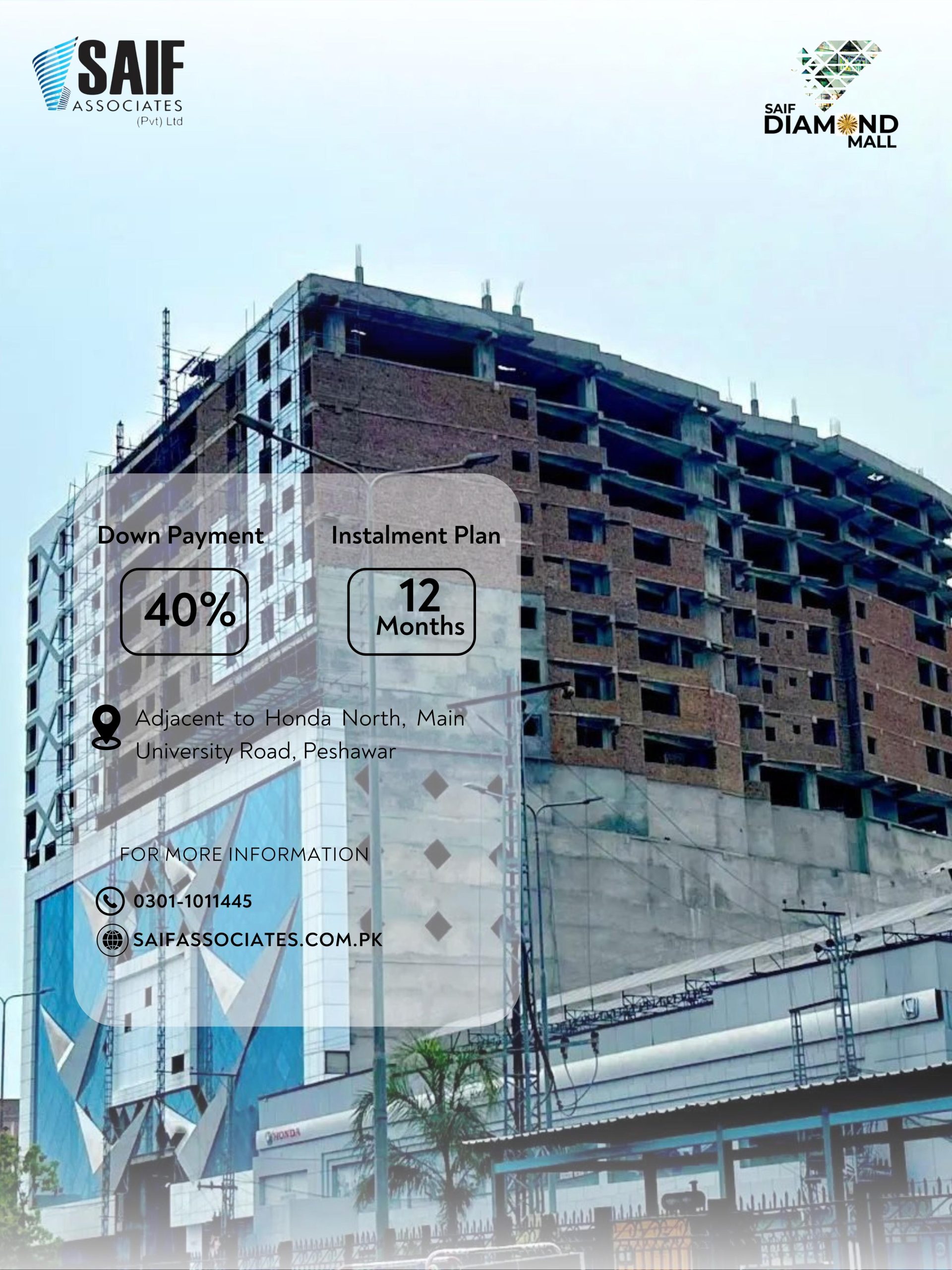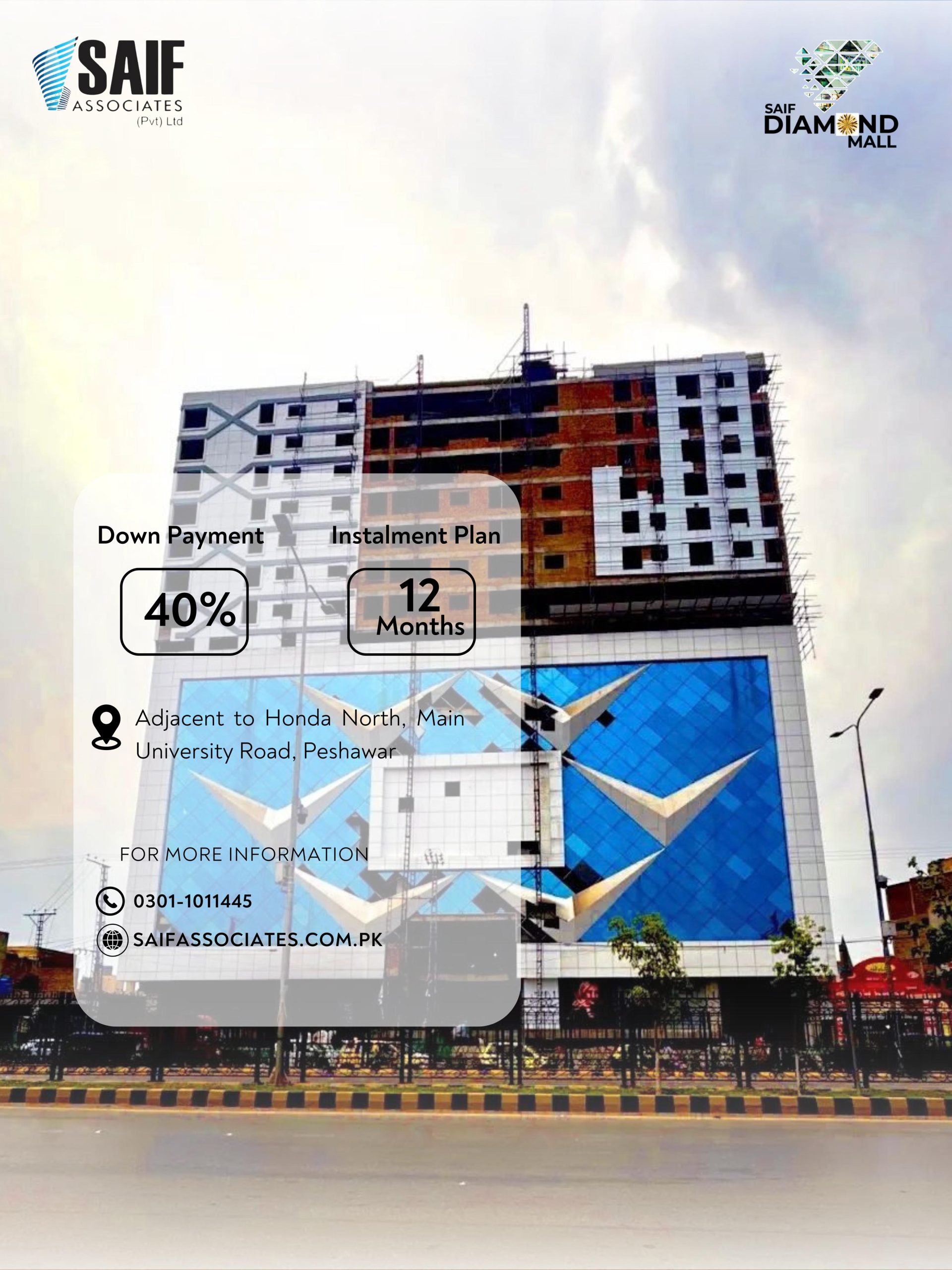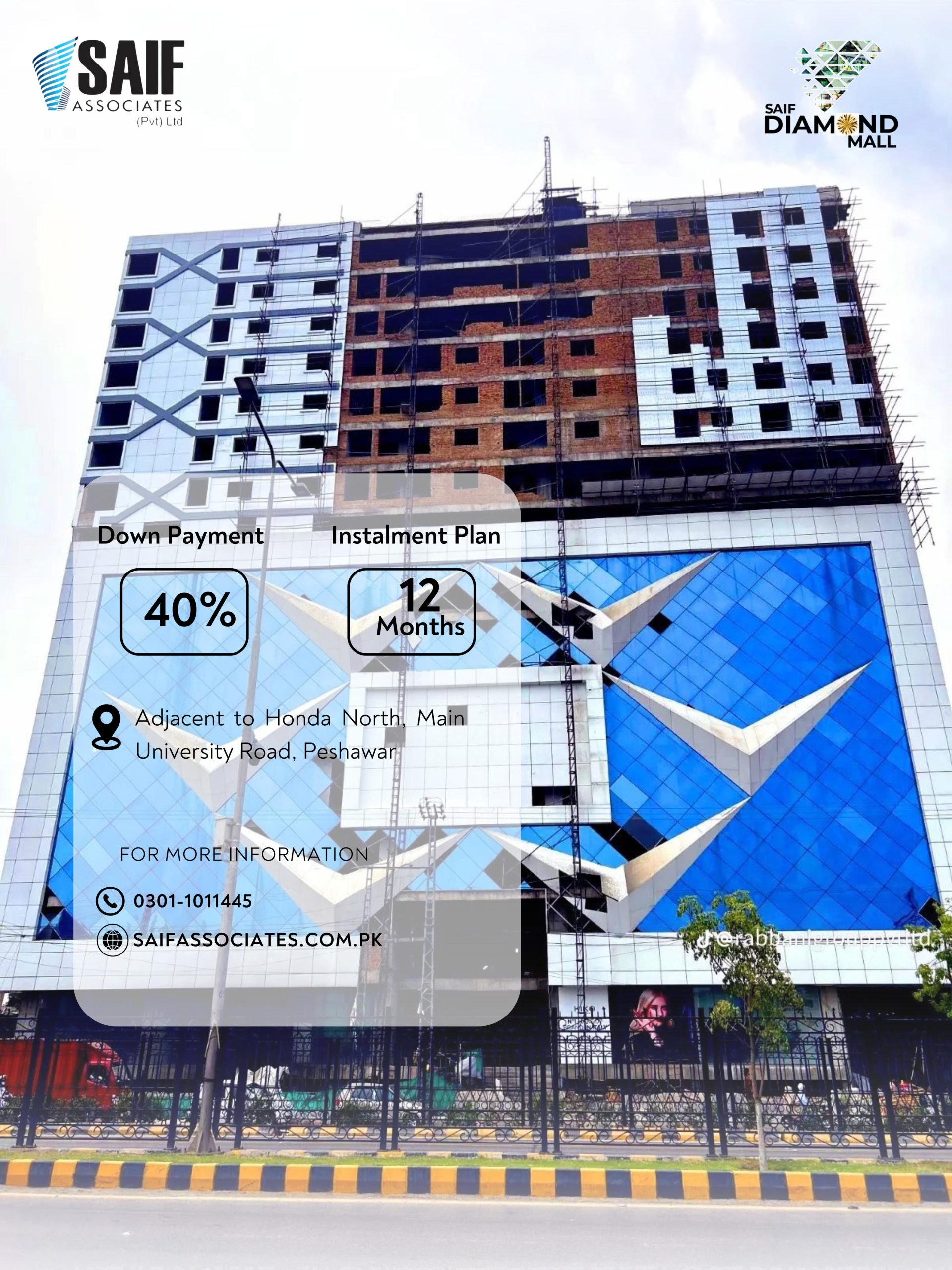 - Kindly checkout below video for complete details regarding Diamond Mall project. For any inquiry, please contact us on the given numbers below. Checkout all projects of Saif Group Pvt Ltd. here.