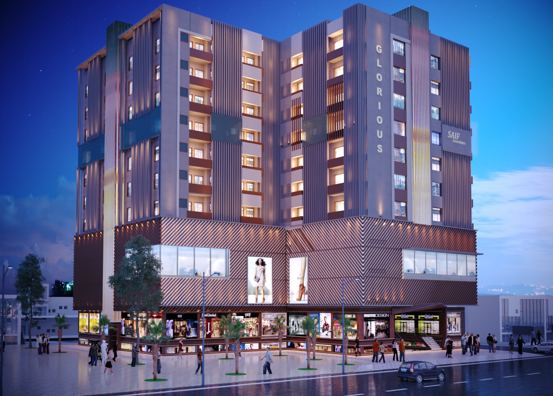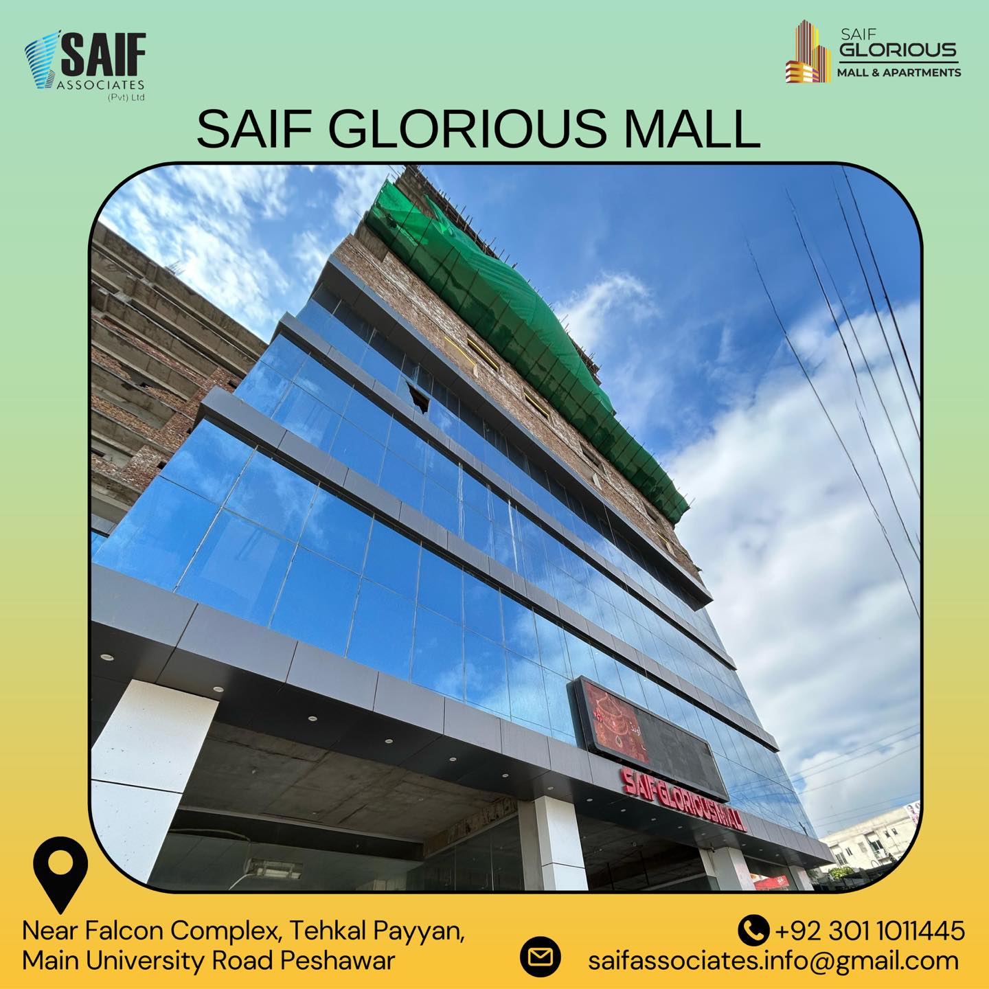 Glorious Mall is a grand residential and commercial highrise project of Saif Associates Pvt Ltd. Located at main university road Peshawar. Saif Associates offers you 1 bed, 2 bed, 3 bed and 4 bed apartments & commercial shops for Sale in Glorious Mall Peshawar on easy monthly installments plans.